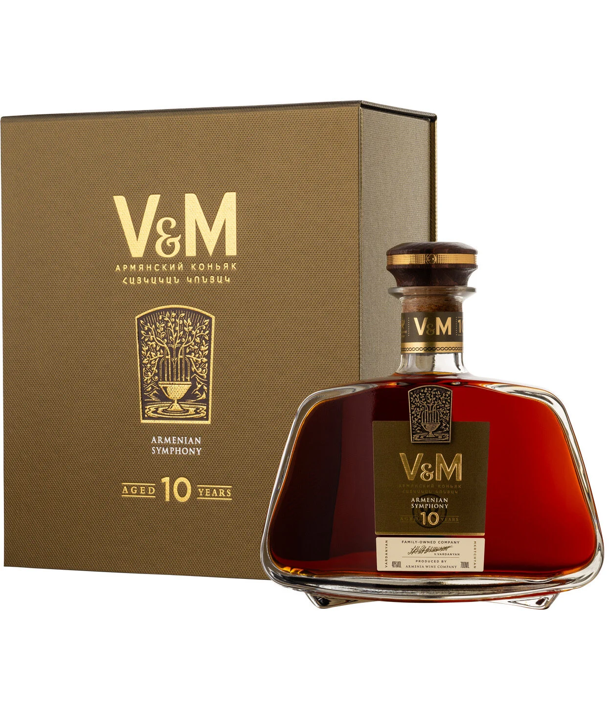 V&M is het kroonjuweel van de Armeense brandytraditie – een eerbetoon aan diepe toewijding, oprechte waarden en de liefde voor het vaderland, zoals gekoesterd door de families Vardanyan en Mkrtchyan, oprichters van het gerenommeerde huis Armenia Wine. Sinds haar oprichting zet het bedrijf zich in om de rijke Armeense cultuur en historie te delen met de wereld, en doet dit met trots via elegante aroma’s en verfijnde smaken. Na jarenlang een voortrekkersrol te hebben gespeeld in de wijnsector, betreedt Armenia Wine nu een nieuw tijdperk: dat van ambachtelijke brandy van uitzonderlijke kwaliteit. Met V&M brandy vertelt het huis het verhaal van Armenië – een verhaal vol diepgang, karakter en traditie, gevangen in een glas. Het embleem van V&M is de wijnstok, een krachtig symbool van leven, creatie, vruchtbaarheid en wijsheid. Deze iconische voorstelling verbindt verleden, heden en toekomst. Bij het maken van deze unieke drank eert Armenia Wine de nalatenschap van generaties vakmensen die het fundament legden van de Armeense brandycultuur. Tegelijkertijd wordt er met elke fles ook een belofte gedaan aan de toekomst – om de hoogste kwaliteitsnormen te blijven bewaken en door te geven. V&M brandy is meer dan een drank: het is een artistieke expressie, geboren uit geduld, passie en meesterschap. Met deze super-premium collectie – bestaande uit brandy gerijpt gedurende 3, 5, 7 en 10 jaar – opent Armenia Wine een nieuw hoofdstuk binnen de wereld van verfijnde distillaten. Een nieuw meesterwerk, klaar om ontdekt te worden.
