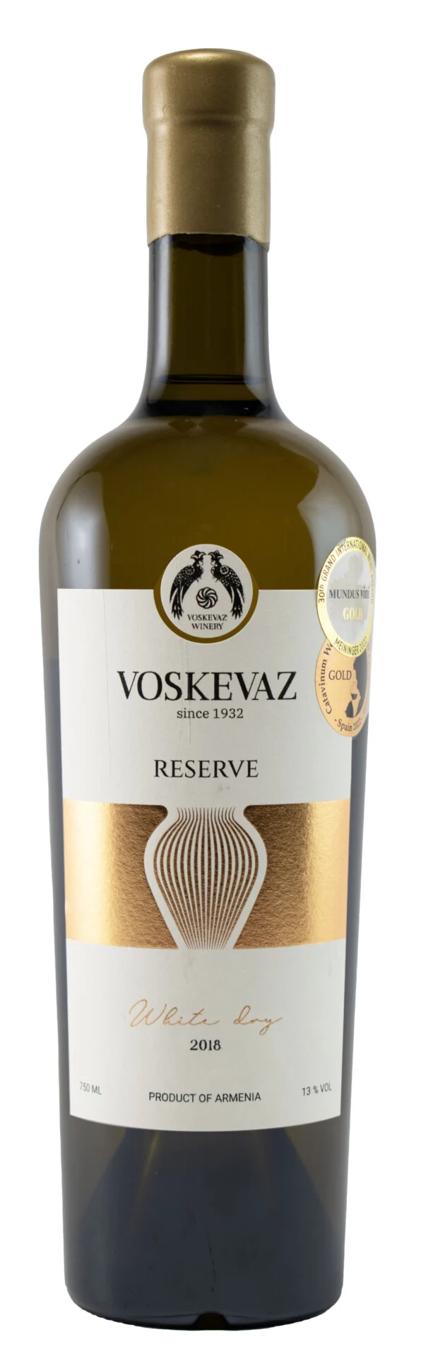 This golden-yellow wine, shimmering in the glass, reveals a stunning bouquet that enchants the senses from the moment the bottle is uncorked. With every sip, the Voskevaz Reserve White unveils an intriguing array of flavors. The dominant notes of white fruit create a lush opening, where the subtle nuances of pears and the intoxicating aroma of acacia blend harmoniously. This fruity bouquet is further enriched by floral elements, lending the wine a refined and fresh dimension. Added hints of freshly baked pastries provide a surprising twist, making the wine a true delight for the senses. This seductive journey for the palate culminates in a mineral finish of medium length, highlighting the wine's complexity and leaving a lasting impression. Pair the Voskevaz Reserve White with lean meats such as chicken or turkey for a perfectly balanced meal. For seafood enthusiasts, steamed fish is an excellent choice to complement the wine's freshness. Serve the wine at a temperature between 10 and 12 degrees Celsius.